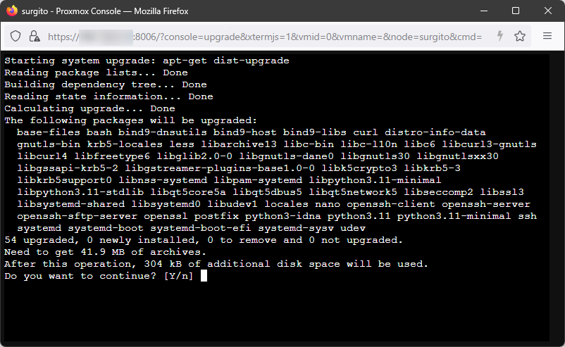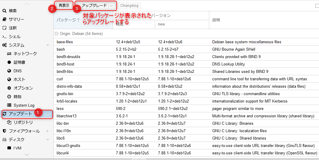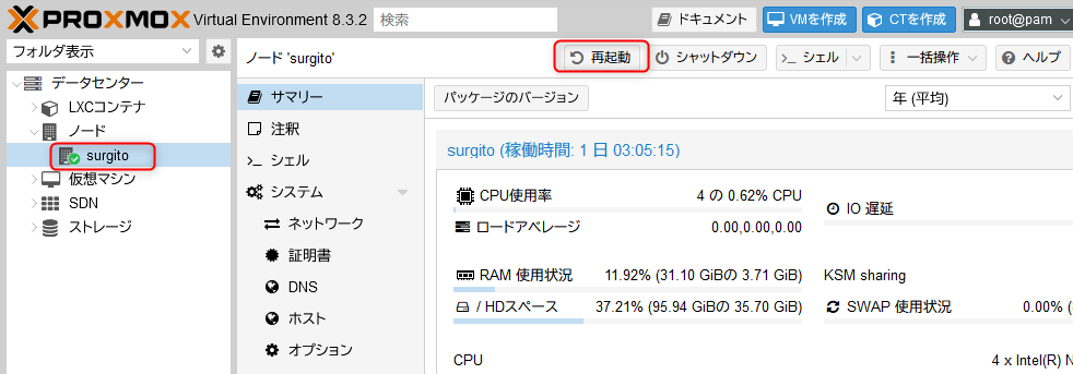 なお、Kernel のアップデートが来た場合は、Proxmox VE 自体を再起動する。