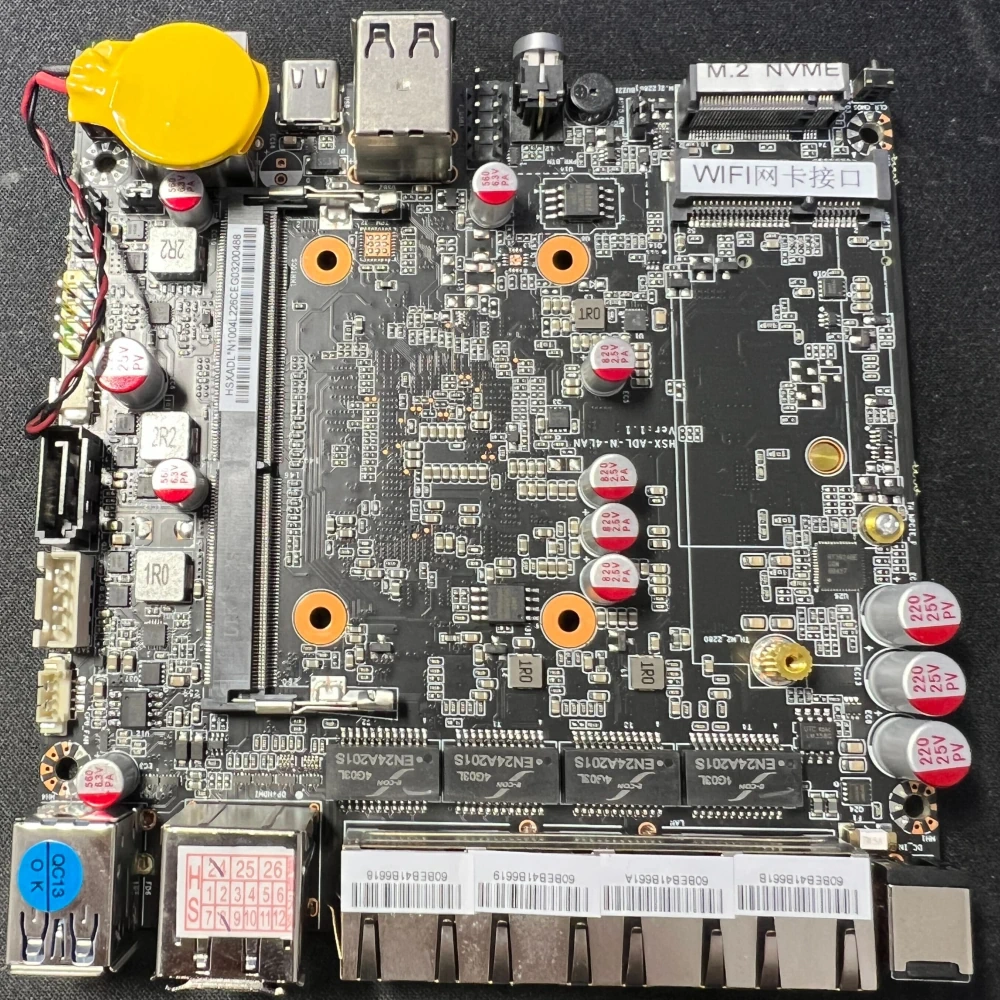 ボード下面側に HSX-ADL-N-4LAN Ver:1.1 というシルク印刷が見える。ググったところ、 CncTion というメーカーが OEM 元らしい。