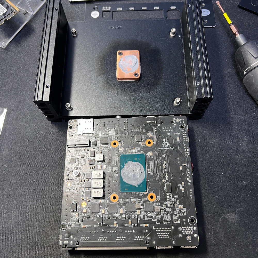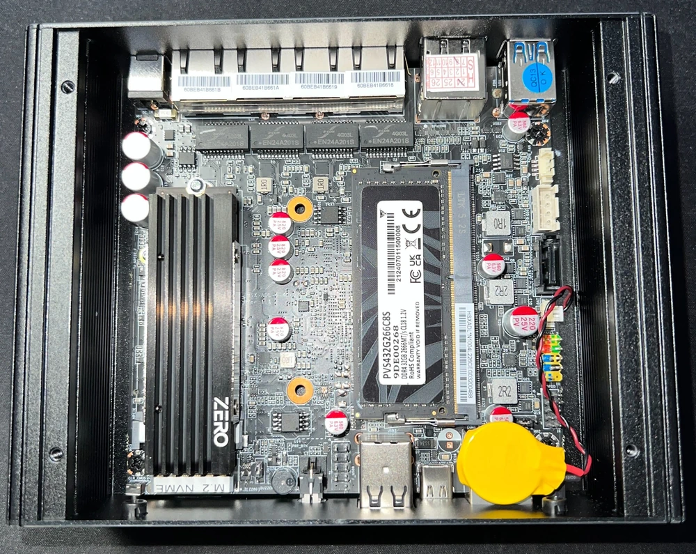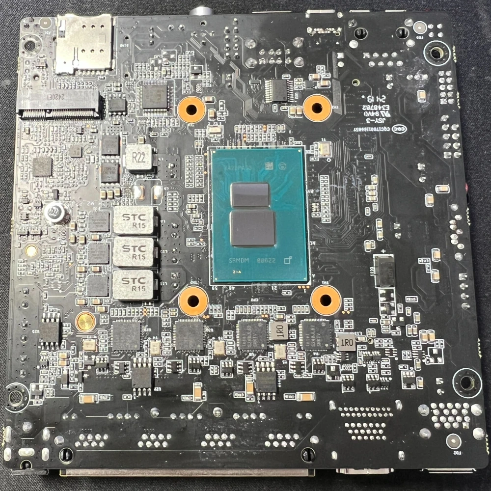 | 中央の緑のモジュールがN100 スペックコード:SRMDM 下にIntel I226-V ×4が配置 スペックコード:SRKTV |
