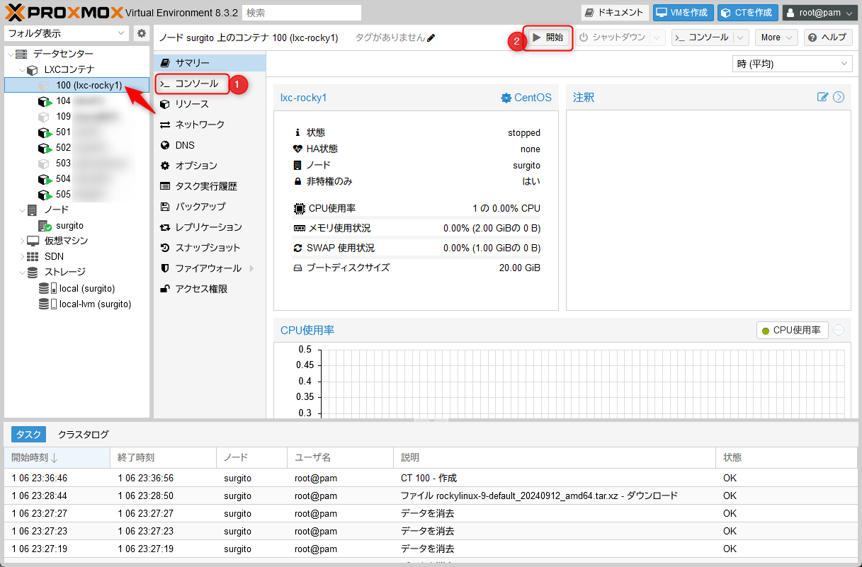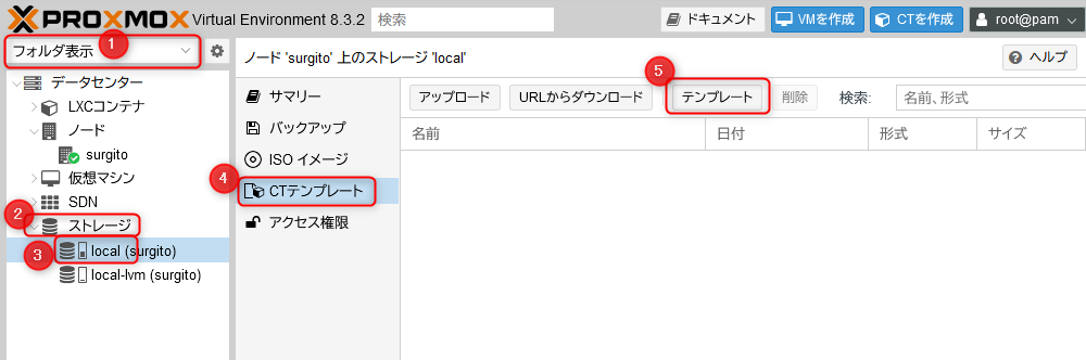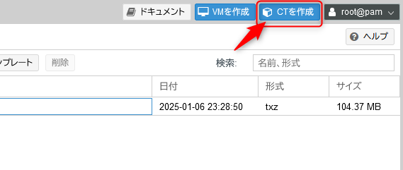 - LXC テンプレートのダウンロードは WebUI でやっておく