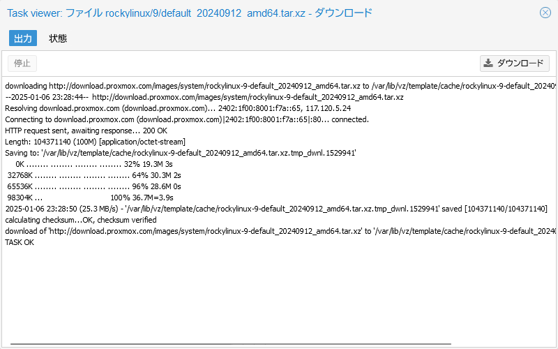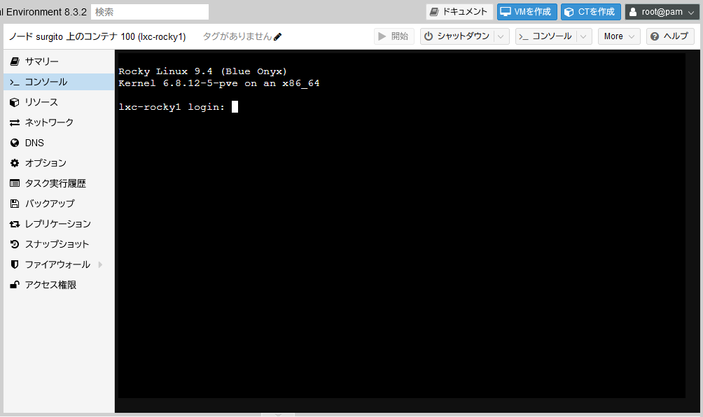 先日立てた Proxmox VE 仮想環境 に、Rocky Linux 9 をゲストOSとして作ってゆく。通常の VM ではなく LXC コンテナとして作成する。