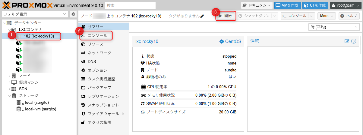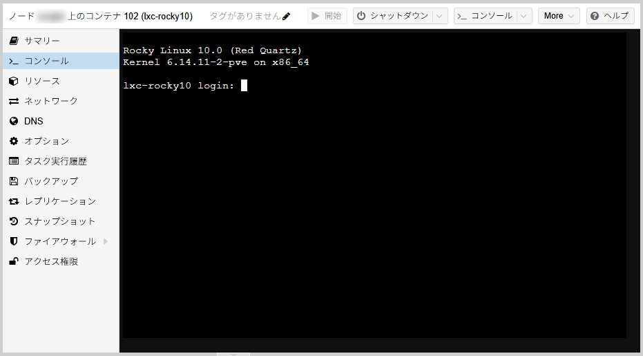 この記事は ProxmoxVE に RockyLinux9 仮想OSを立てる(LXC編) の焼き直しである。LXCの特徴云々は省略。