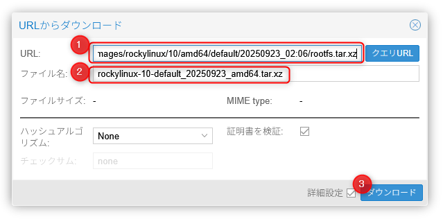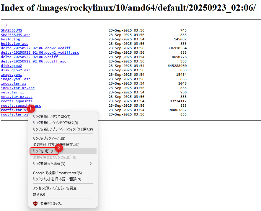 - ファイル名: rockylinux-10-default_20250923_amd64.tar.xz