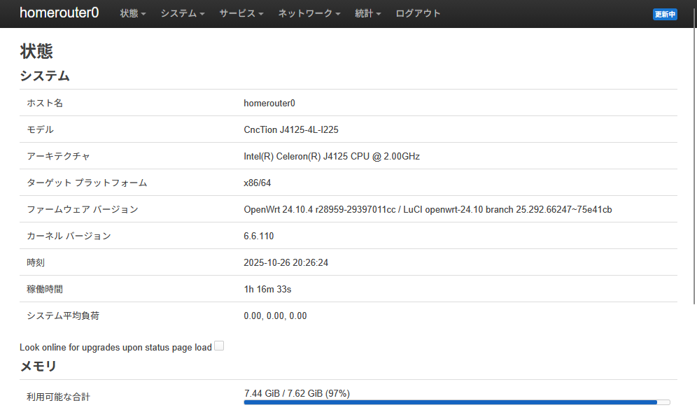 (4) 作業用PCのブラウザから OpenWrt 設定画面